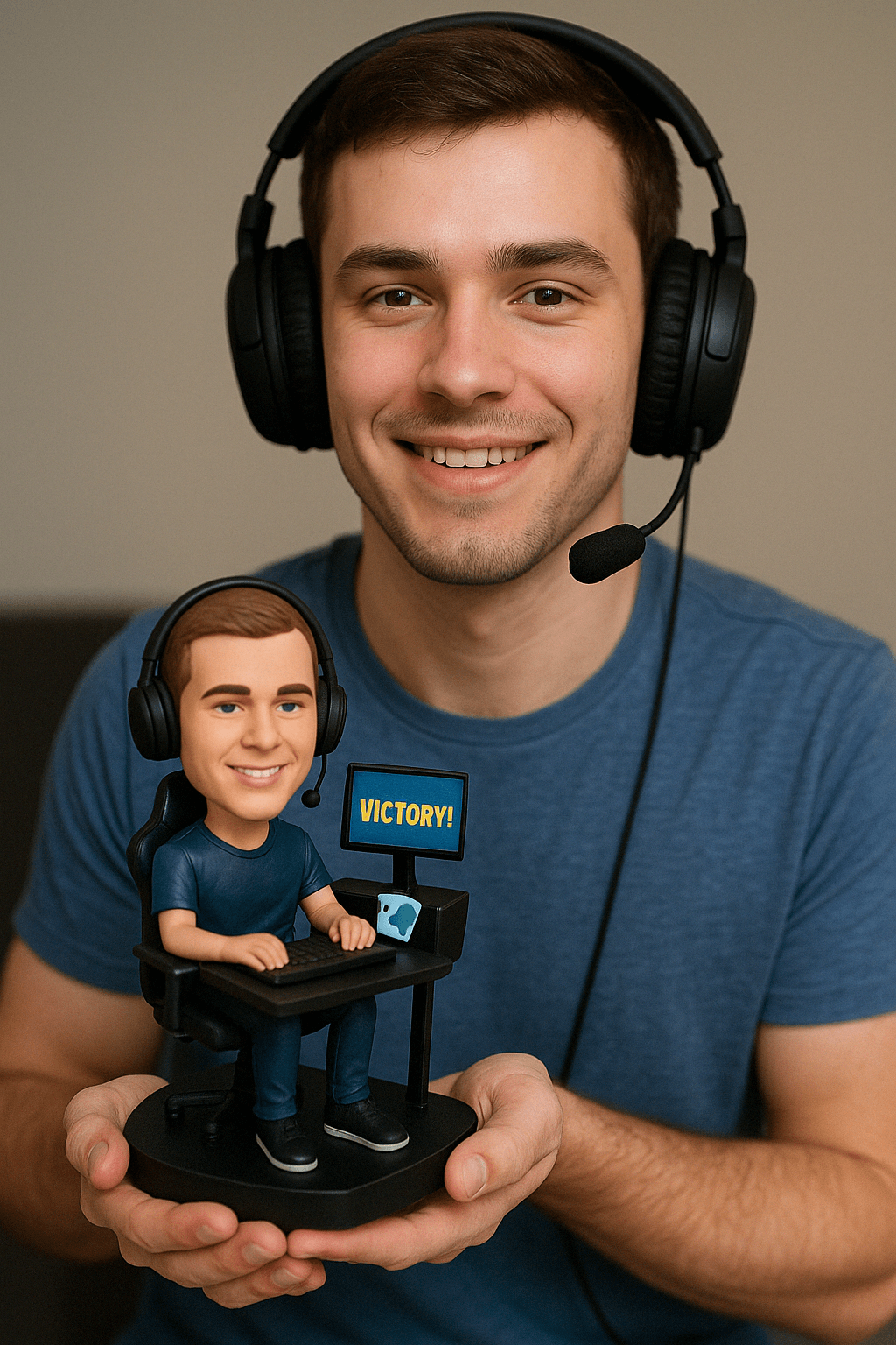 Level up your desk with your very own Custom Esports Gamer Bobblehead – a handcrafted tribute to every clutch play, late-night grind, and ultimate "VICTORY!" moment.