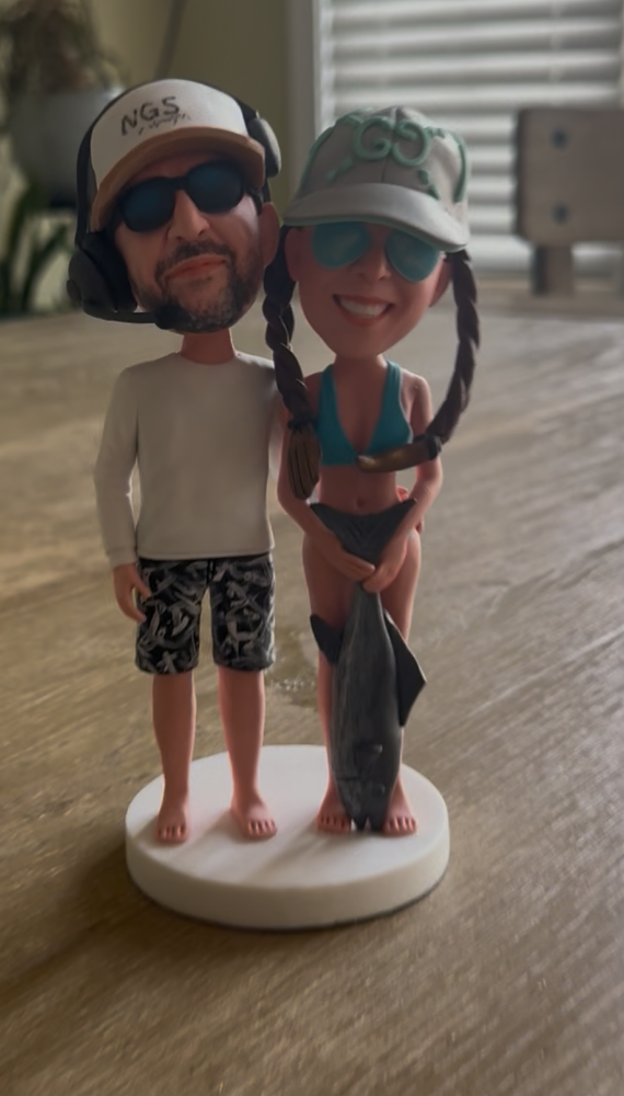 The Artists are amazingly talented and very accommodating. They will work with you on your custom design until you are satisfied and the result is on the mark. Mix-up when I placed my original order; but Owner was understanding and most helpful. I am highly appreciative! This Bobblehead Couple was a belated First Christmas gift to my niece and her husband, and they are Extremely Happy with it. Highly recommend. Thank You So Very Much, Judy and staff! -RosaLinda🌹
